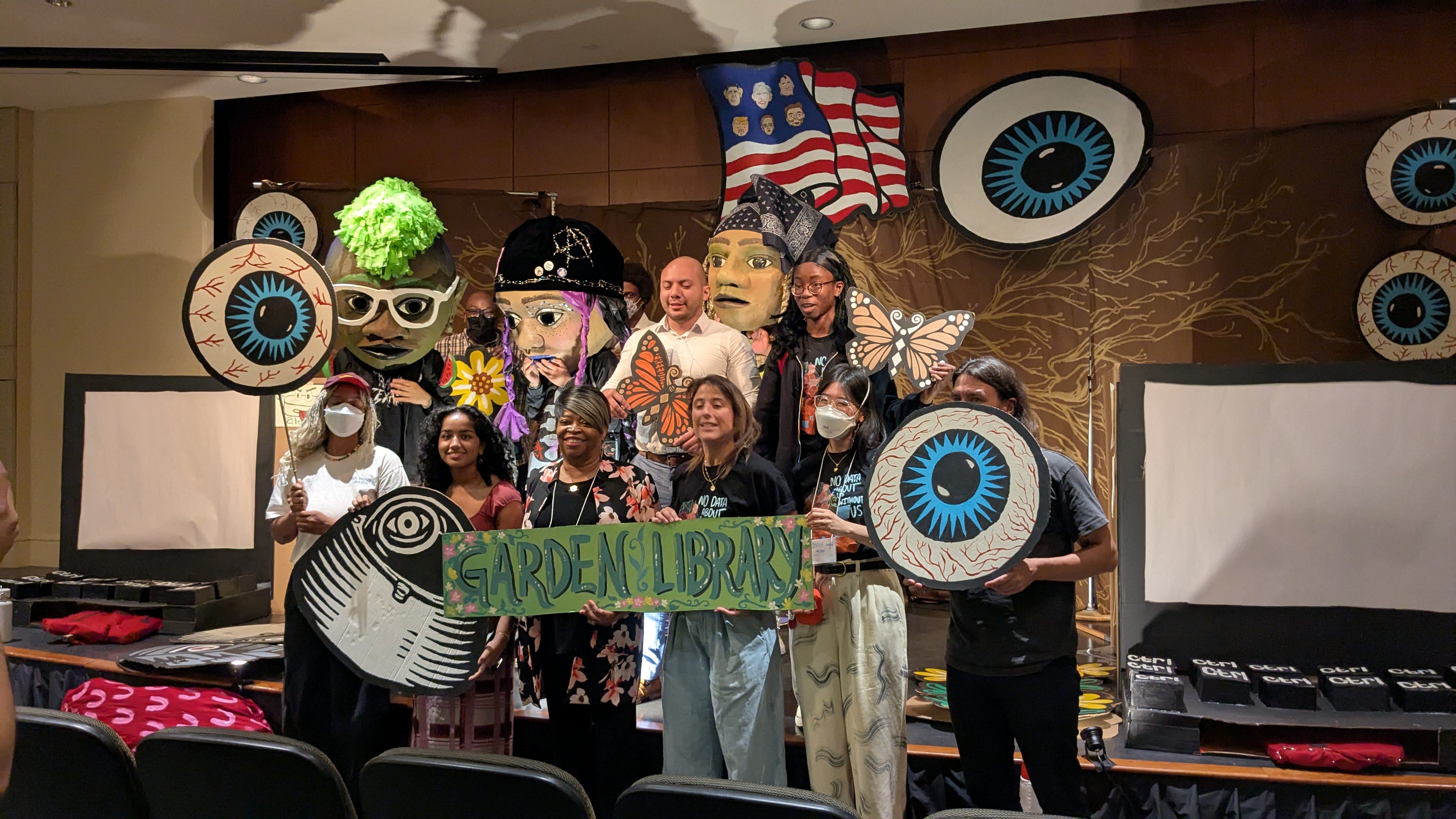 The performance followed three puppet-students who face different kinds of profiling and policing because of surveillance used in their schools. One student is sent to the “Learning Center,” a high-surveillance alternative school, after searching for banned information on school computers — a growing problem as the State of Texas enacts book bans and stifles freedom of speech in schools. Other characters spoke to the challenges that students with juvenile correctional backgrounds or undocumented family members face when they’re targeted for disciplinary action by any number of surveillance technologies that schools have at their disposal.